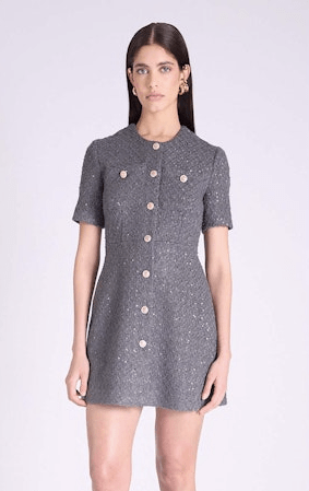 ROBE COURTE BOUTONNEE EN TWEED SEQUINS MANCHES COURTES POCHES PLAQUEES
