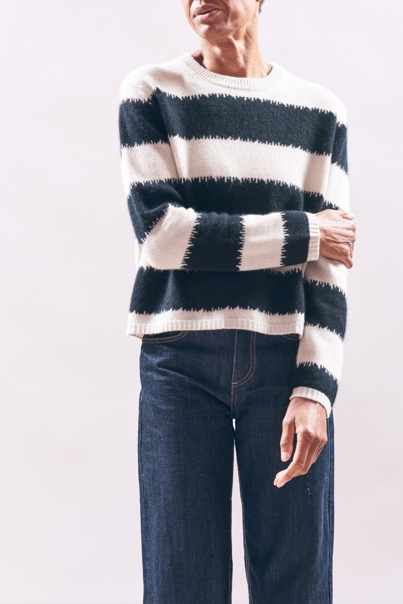 Jumper 1234 Broken Stripe Crew in Limestone Black
