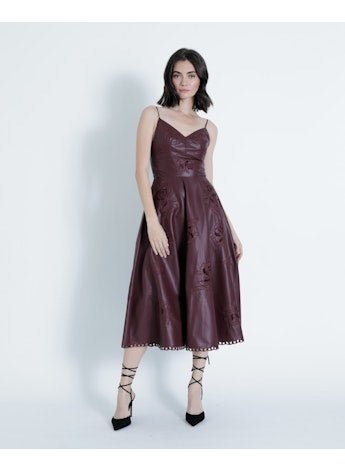 Karina Grimaldi Gloria Vegan Leather Midi Dress in Malbec Karina Grimaldi Gloria Vegan Leather Midi Dress in Malbec