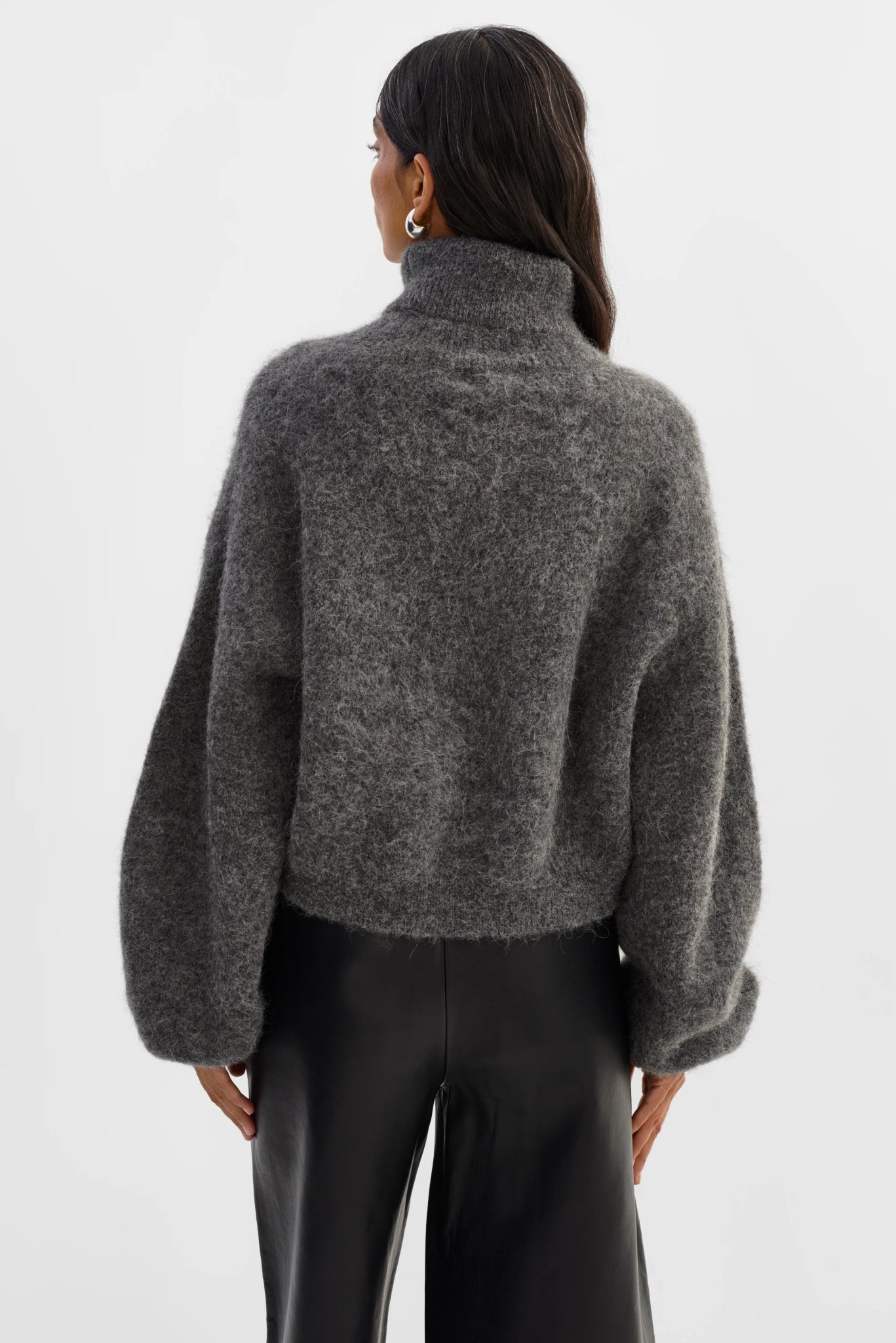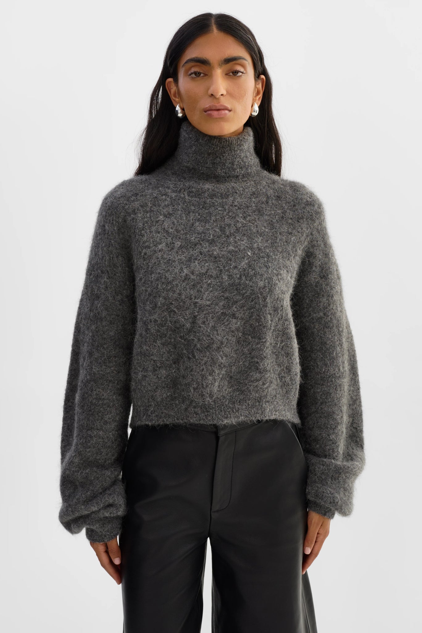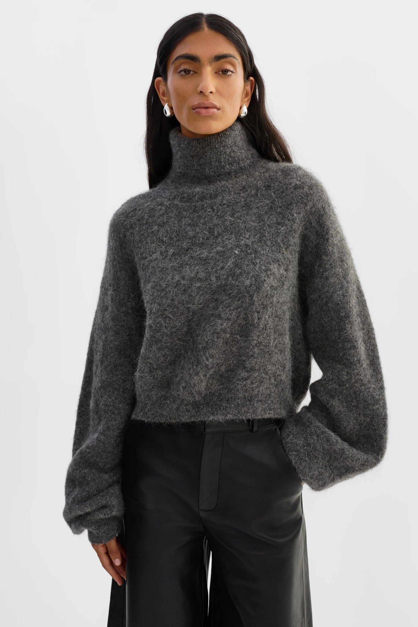 All about luxury and edge, the GARCELLE Wool Sweater is knitted from a plush alpaca blend that exudes sophistication. The loose fit and high-low hem add a modern, yet refined touch. Featuring a cropped length, bold turtleneck, and balloon sleeves, it's perfect with high-waisted jeans for an effortless, casual look or with the matching TARAN Wool Pants for the ultimate cold-weather statement.