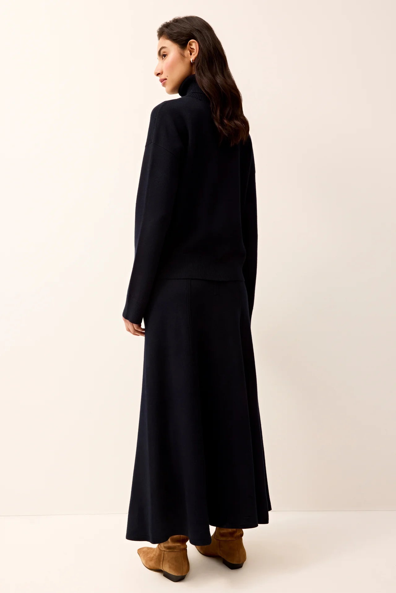 Sleek yet substantial, the Jemma skirt is crafted from a structured knit that holds its shape beautifully. The fit-and-flare silhouette drapes with just the right amount of movement, while a discreet back zipper ensures a smooth, tailored finish. Style it with the coordinating Emmy Sweater for a refined monochrome look that’s ideal for holiday hosting, festive gatherings, and travel days alike.