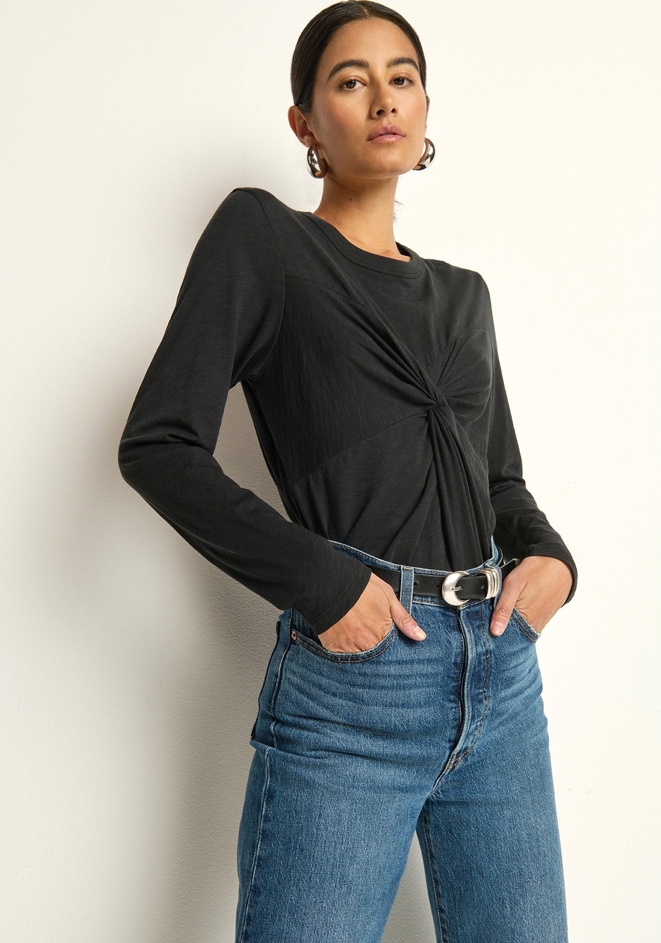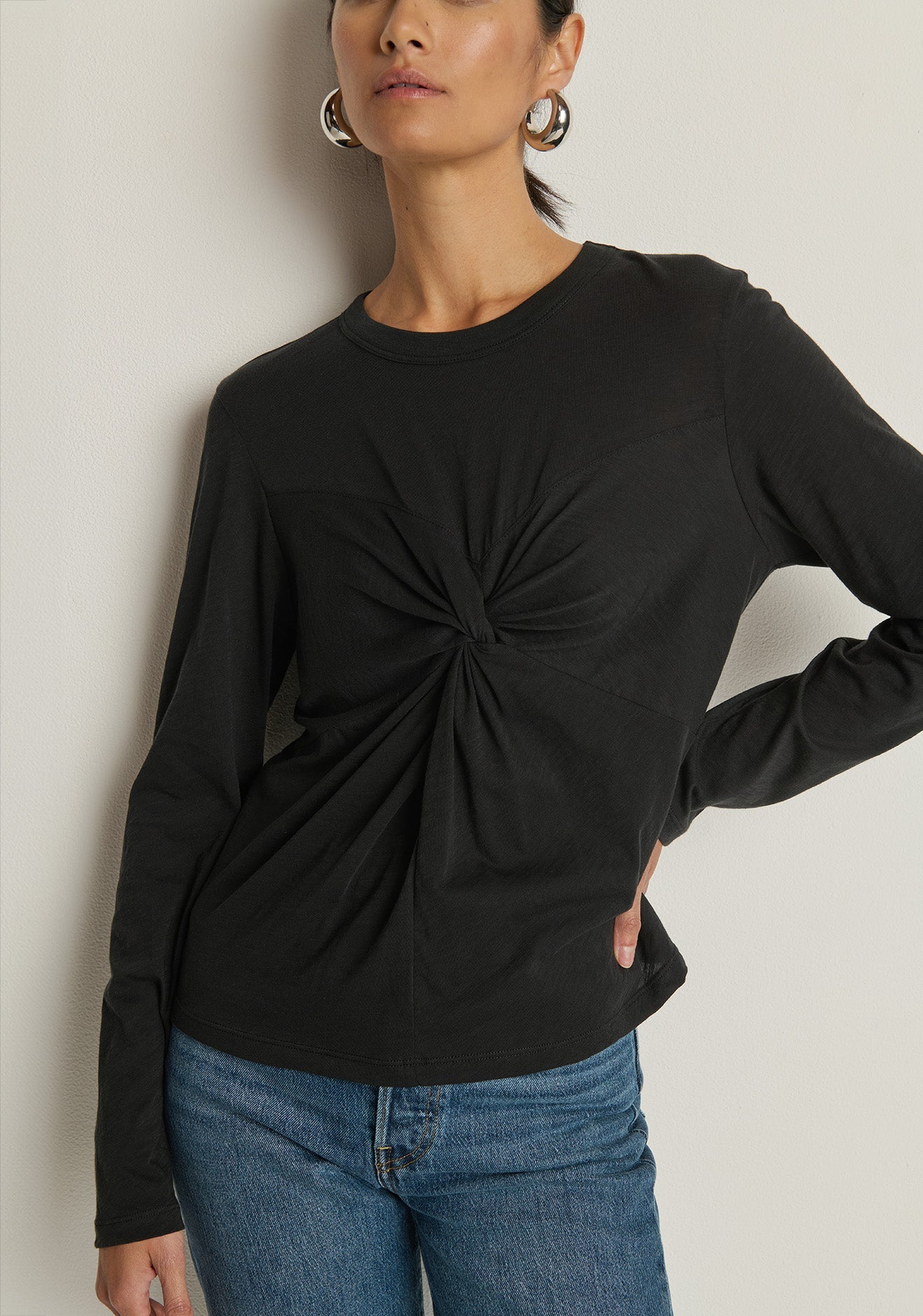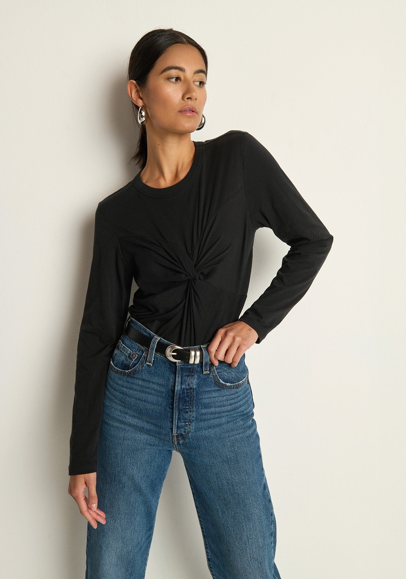 A little twist goes a long way. The Marion Tee turns a staple into a statement with soft ribbing at the neck and an artful front twist that shapes the fit, hugging in all the right places. Made from 100% pima cotton in our classic signature fit, it’s effortless, flattering, and just bold enough.