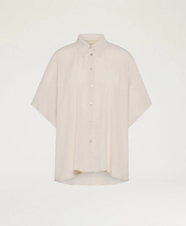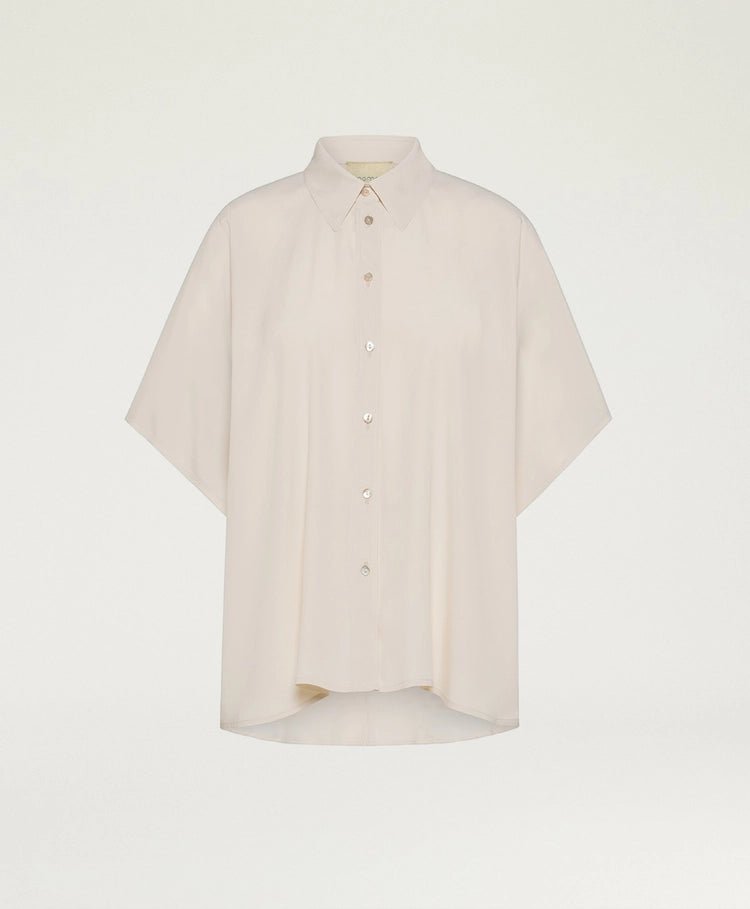 Carry-over boxy short sleeve shirt in solid colour habutai silk. An essential, versatile piece suited to any occasion.
