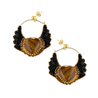 Nahua Ani Hoops in Black Lizard Tiger Eyes Nahua Ani Hoops in Black Lizard Tiger Eyes