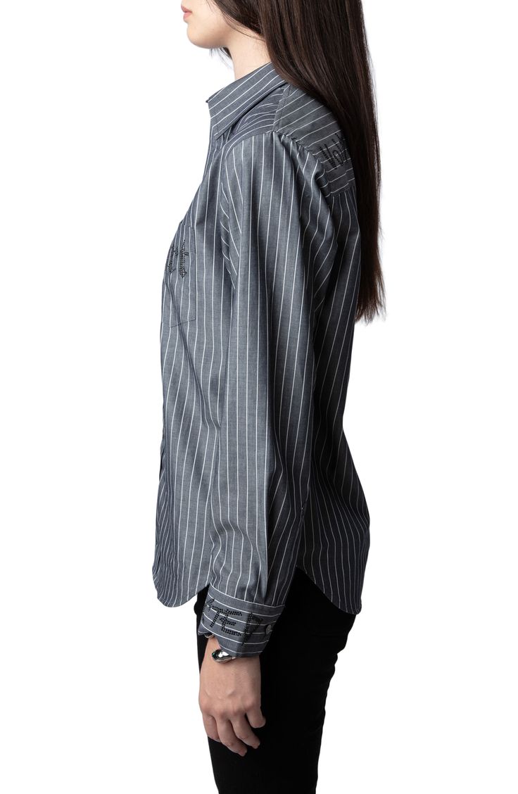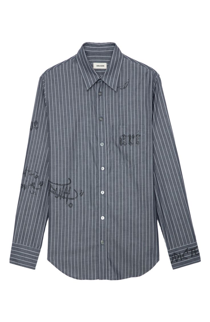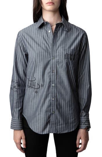 Zadig & Voltaire Taskiz Manifesto Stripe Embellished Cotton Button-Up Shirt in Evening