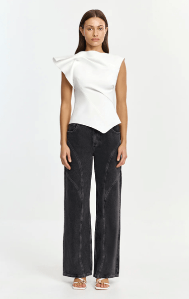The Cornmore Top in Ivory exemplifies architectural minimalism, designed for modern event dressing and elevated everyday wear. Its bonded, woven fabrication offers a sculpted silhouette that sits refined against the frame, complemented by an invisible centre back zip for a seamless finish. An opaque construction allows for confident styling, uniting function and elevated sophistication.