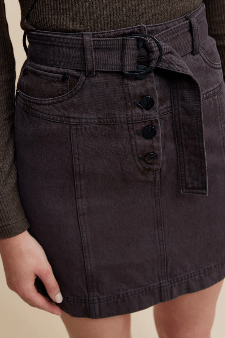 The Hawkin Skirt in Indigo is fitted at the waist and relaxed toward the hem. Perfect for every day styling, featuring matte black hardware, adjustable D-ring waist belt and highlight top stitching.
