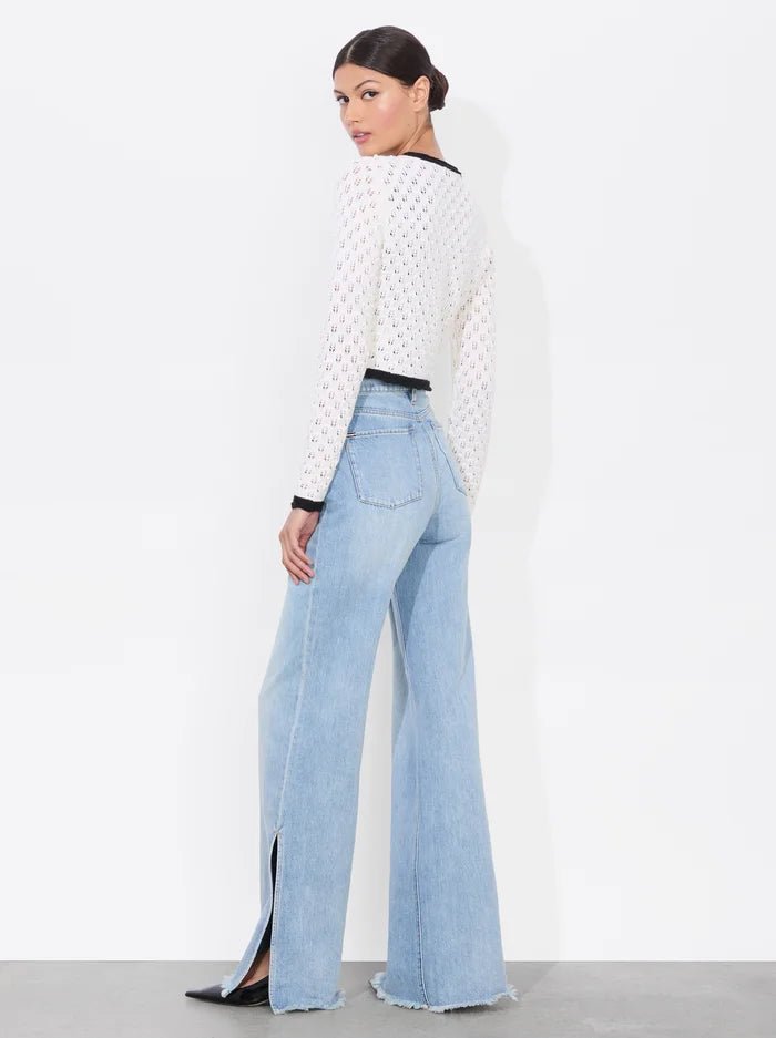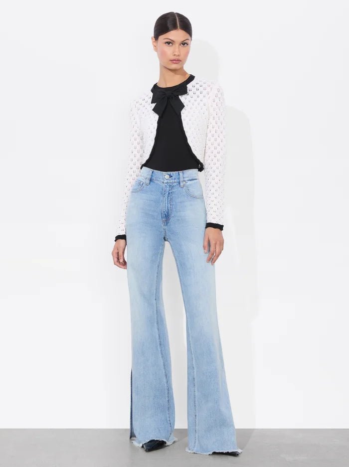 Alice + Olivia Dannie Shrug Bow Cardigan in Soft White Black