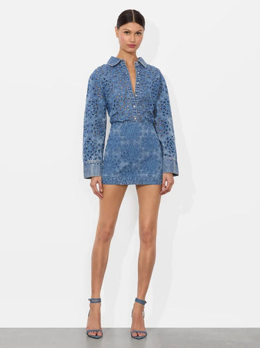 Alice + Olivia Rubi Denim Micro Skirt in Avery Blue