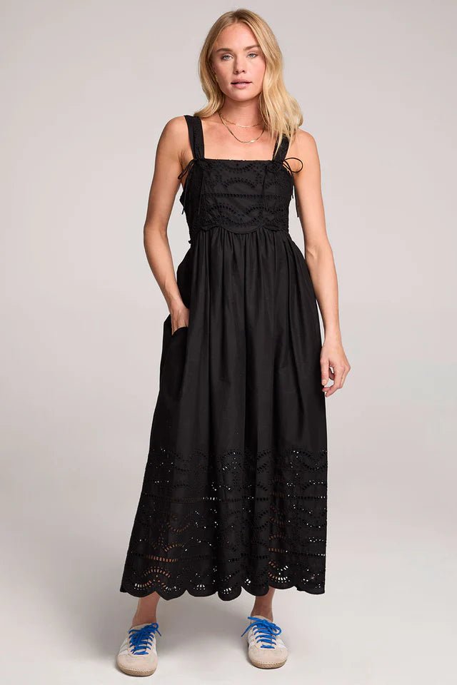The Avelina Midi Dress embodies effortless elegance with its gathered texture at both the bodice and skirt, creating a refined silhouette.