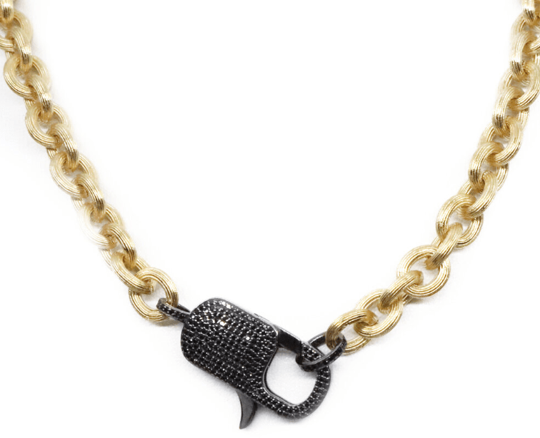 Dramatic and memorable, our Paula Original Big Padlock in black spinel paired with a multi-plated gold industrial chain makes a big statement.