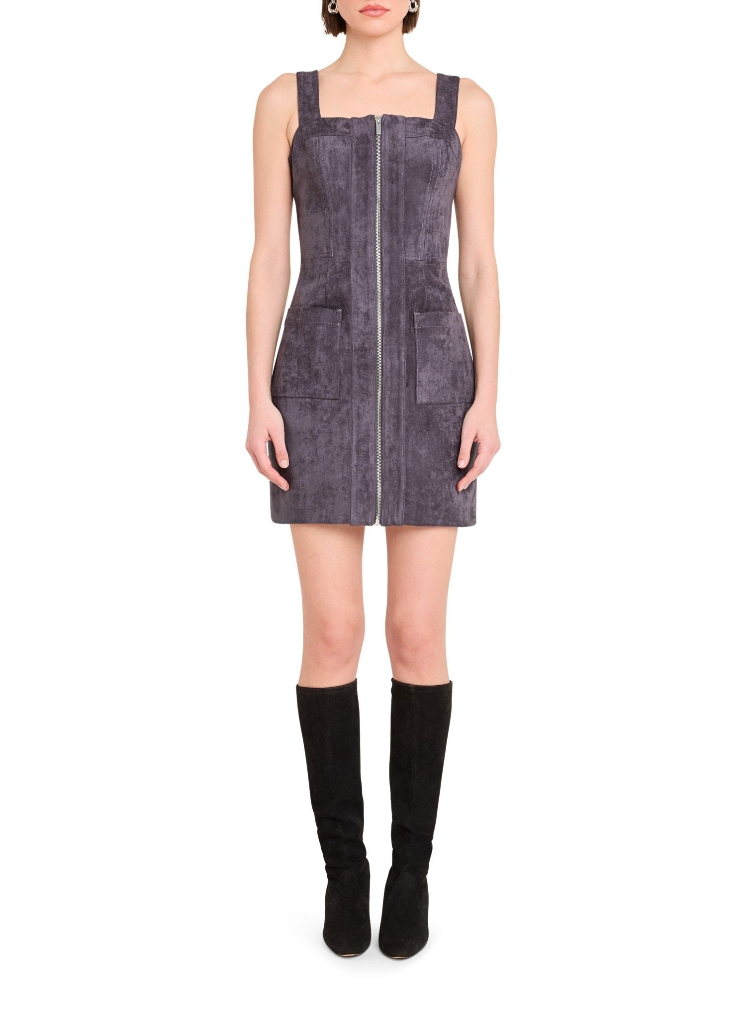 Show up strong in the Becker Dress. Crafted from suede with wide straps and a zipper all the way up the front, it’s got structure with a hint of attitude. Pair with black boots and layer on the Becker Jacket to complete the set.
