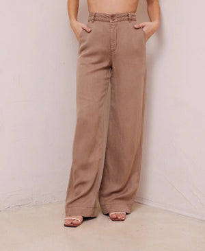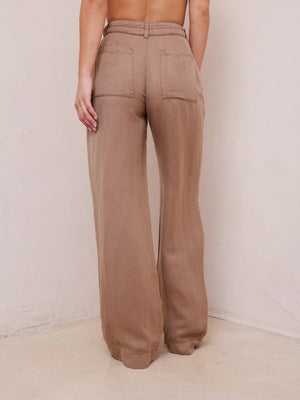 Bella Dahl Harper Linen High Waist Pants in Mocha Chocolate