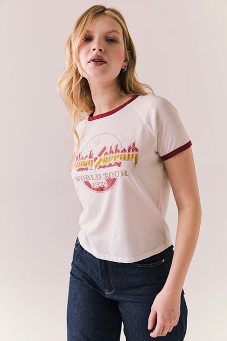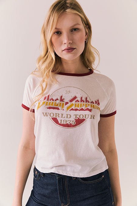 Chaser's Black Sabbath 1975 Tour Graphic Tee delivers rock legacy in soft white cotton—distressed tour artwork, vintage fit, and everyday edge included.
