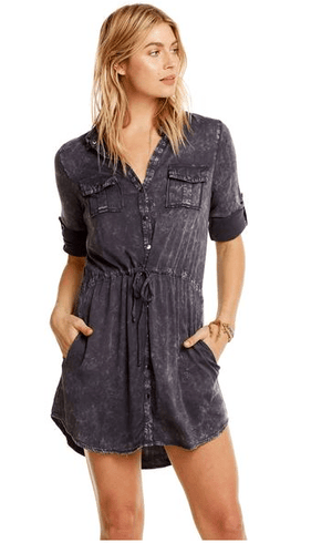 Chaser Roll Up Sleeve Button Down Dress