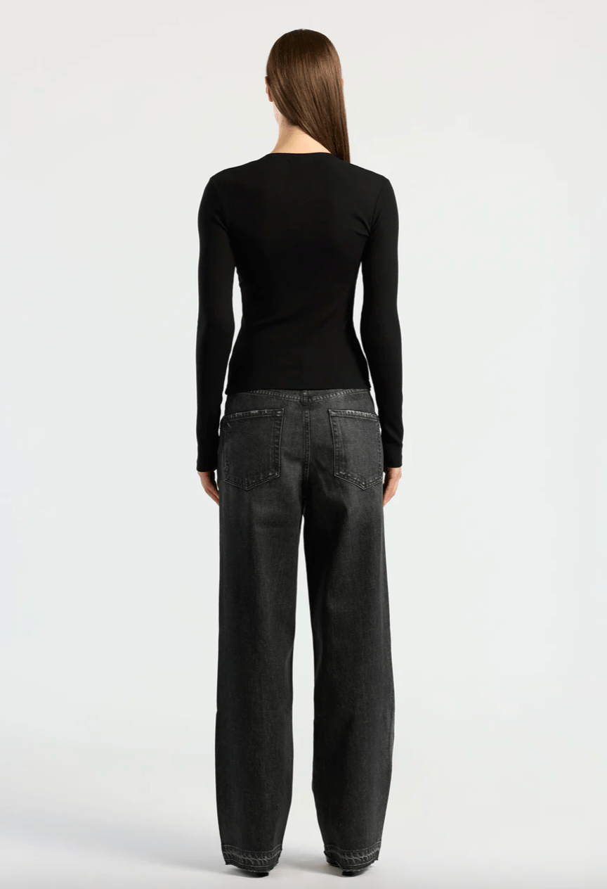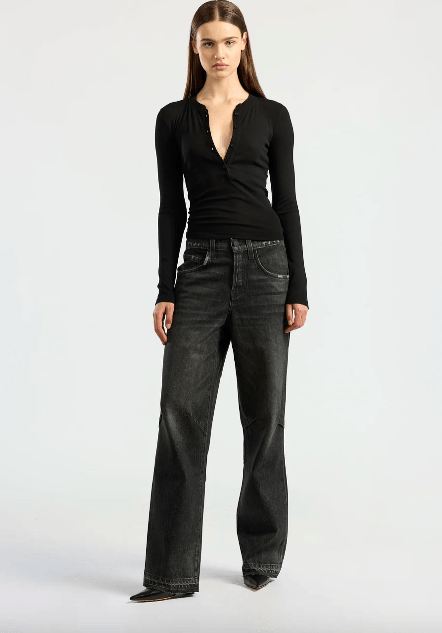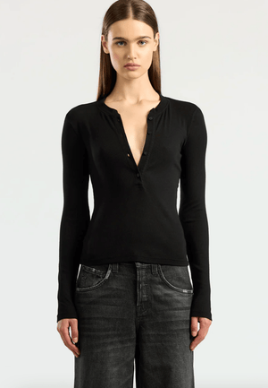 Form-fitting and flattering, the Verona Henley is the perfect transitional layer. Super soft baby rib jersey made from cotton modal hugs the body. This handcrafted, full-length top will effortlessly integrate into any foundational wardrobe.