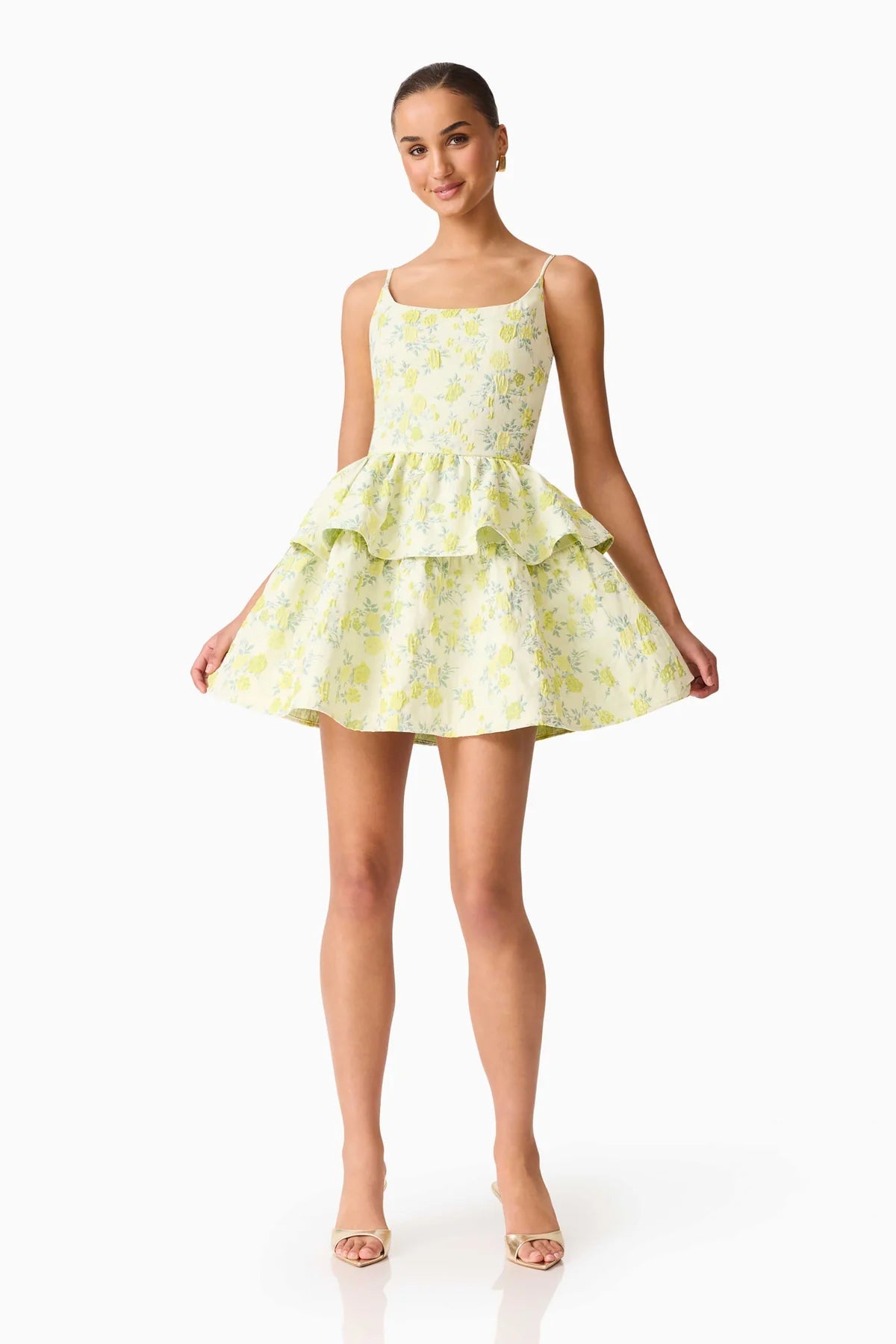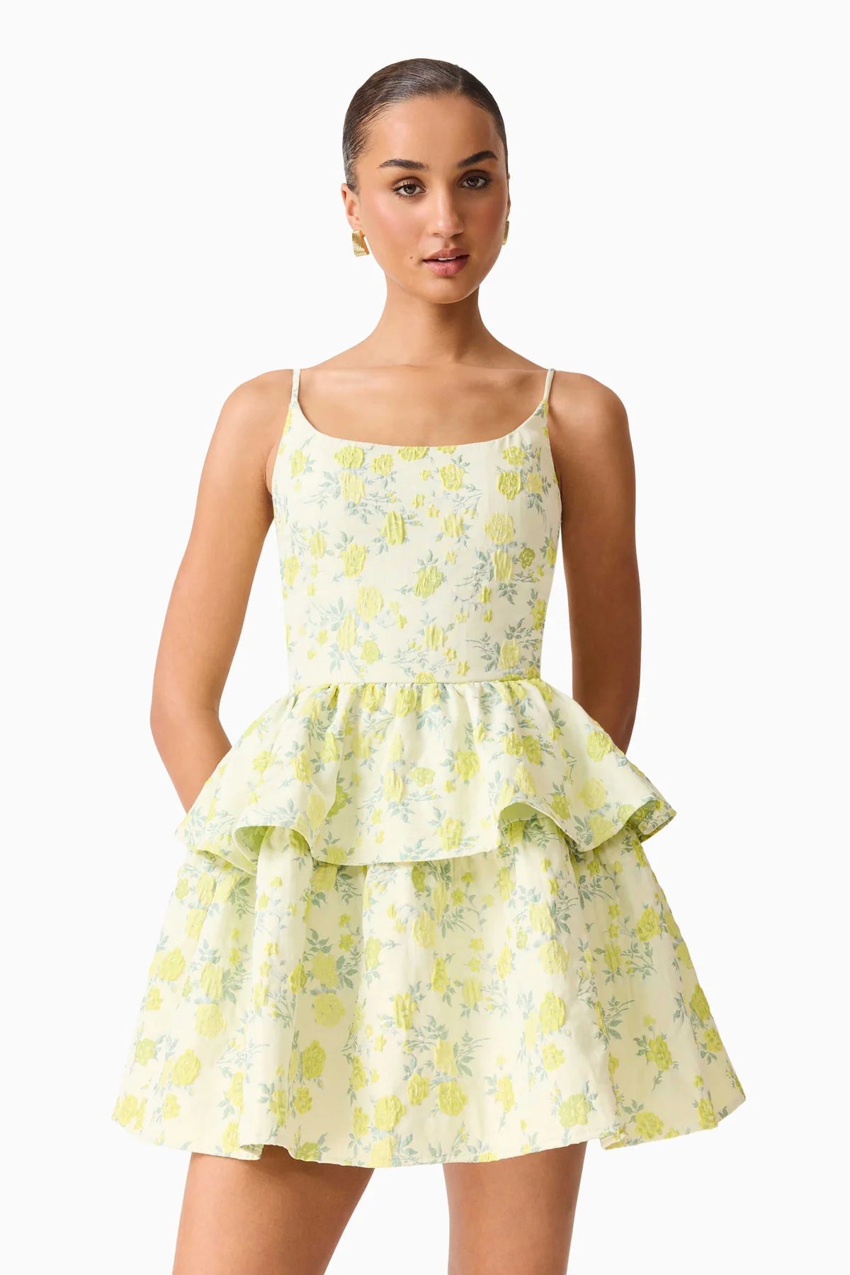 Elliatt Posey Jacquard Mini Dress in Green Floral