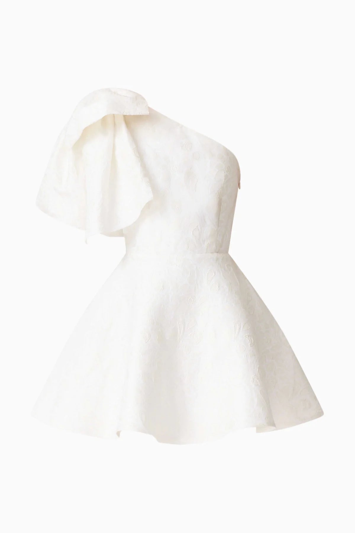 Saffron Asymmetrical Mini Dress - White Floral Jacquard