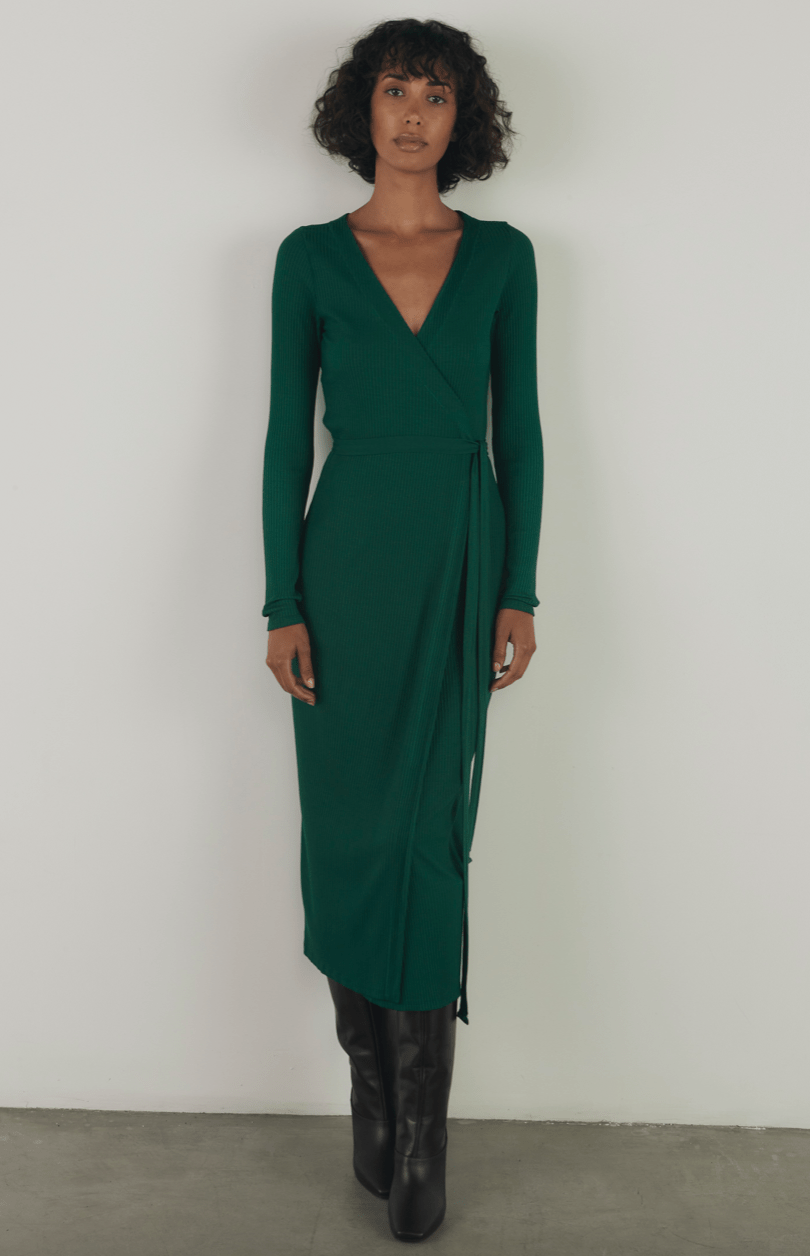Enza Costa A Coste Wrap Dress in Dark Emerald