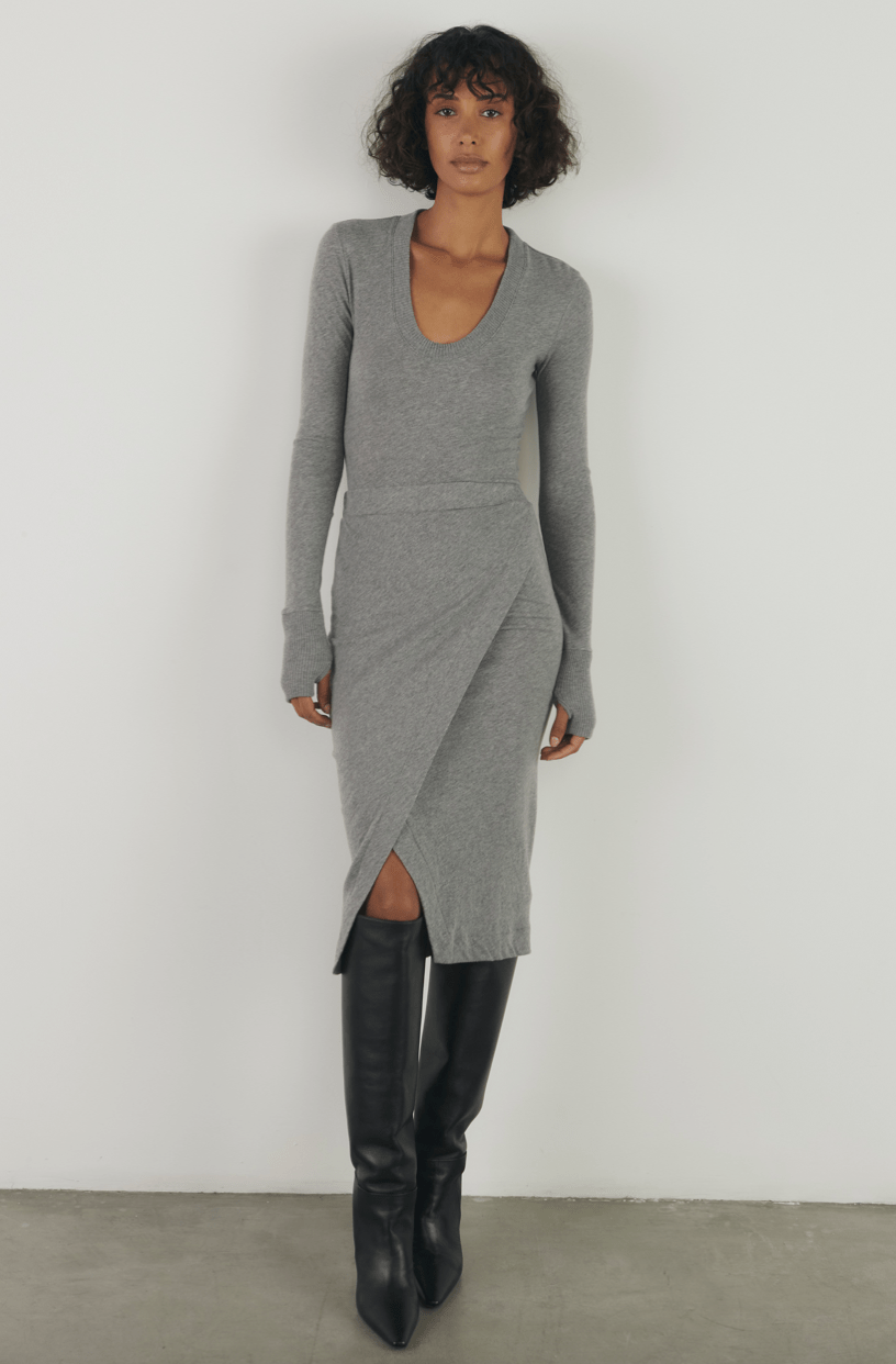 Enza Costa Long Sleeve Bodysuit in Smoke