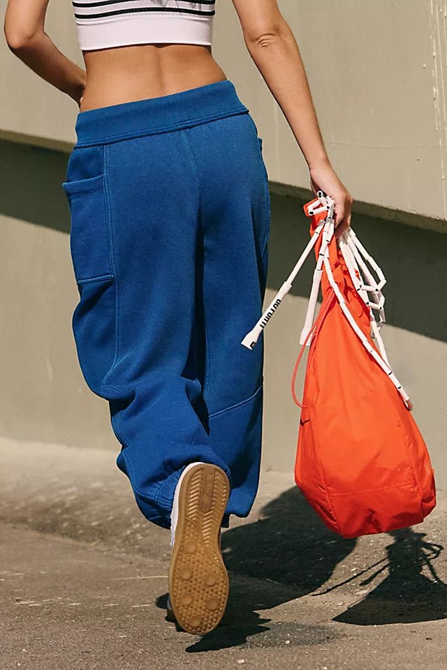 Features: Low-rise style; drawstring detail at waistband; elasticated ankles; side pockets