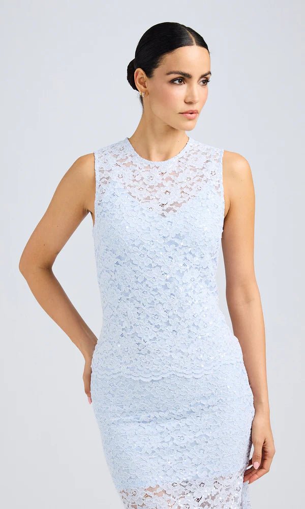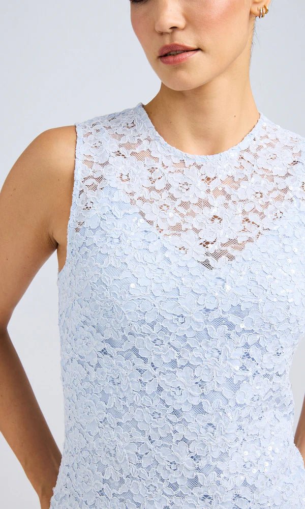 Sequin accents lend a soft yet captivating shimmer to this romantic floral lace top. With a cami lining for a refined finish, it offers a polished look and pairs effortlessly with tailored pants or skirts.