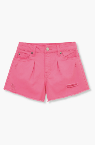 Your kid will love the bright colors and trendy distressed details of these pleated denim shorts that are sure to be a go-to in warm weather.