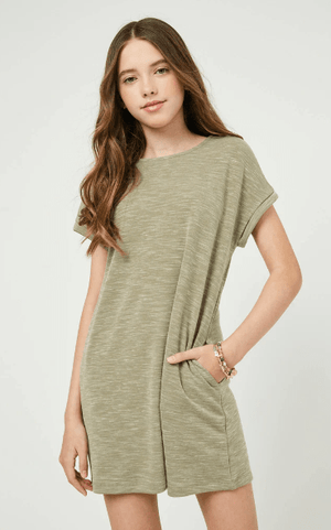 Hayden Girls Roll Sleeve Mini Dress in Olive