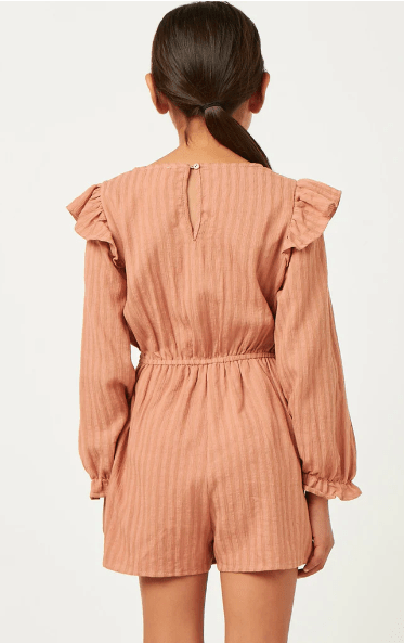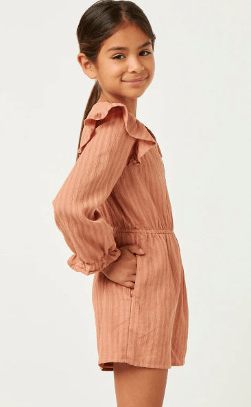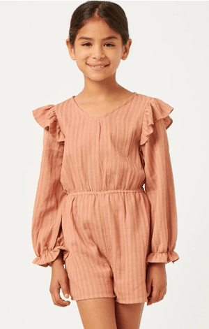 Hayden Girls Ruffle Shoulder Romper in Mauve