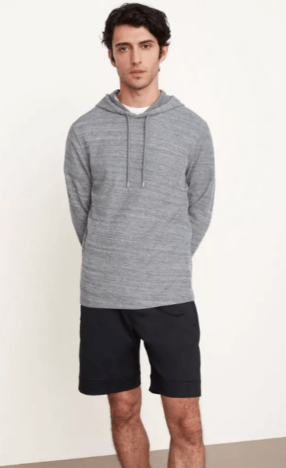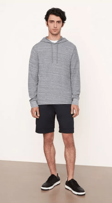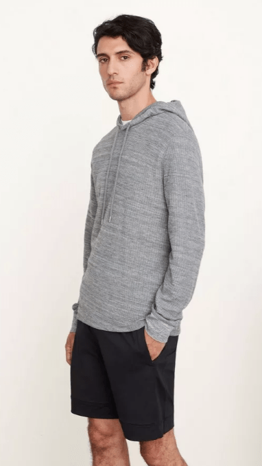 Vince Heather Thermal Popover Hoodie in Heather Black
