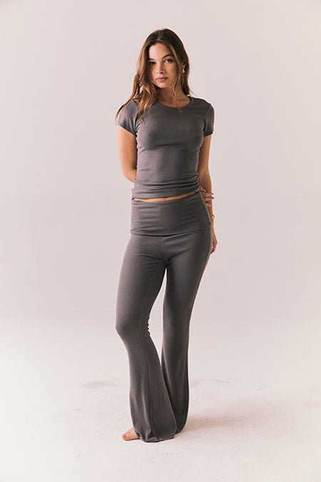 The Honey Dark Gull Tee showcases a classic babydoll silhouette with a flirty, sleek fit.
