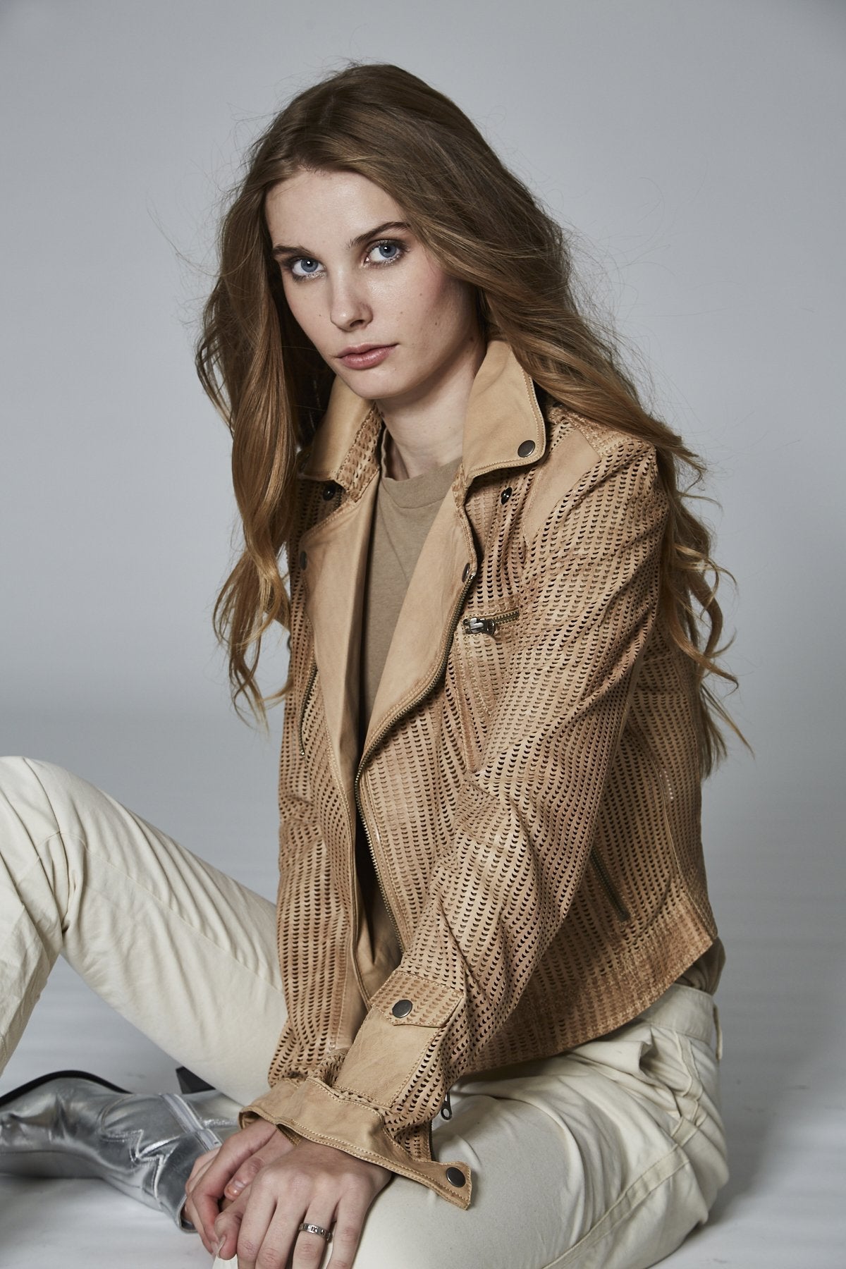 Jakett Josey Perforated Jacket in Sand - Estilo Boutique Jakett Josey Perforated Jacket in Sand - Estilo Boutique