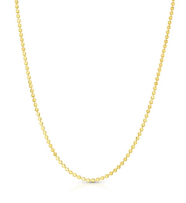 Elevate your style with the DOTTED DELIGHT NECKLACE in gold. Its intricate dotted chain adds a subtle yet stylish touch to any look. With a simple and sophisticated design, this necklace is the perfect accessory for any occasion.