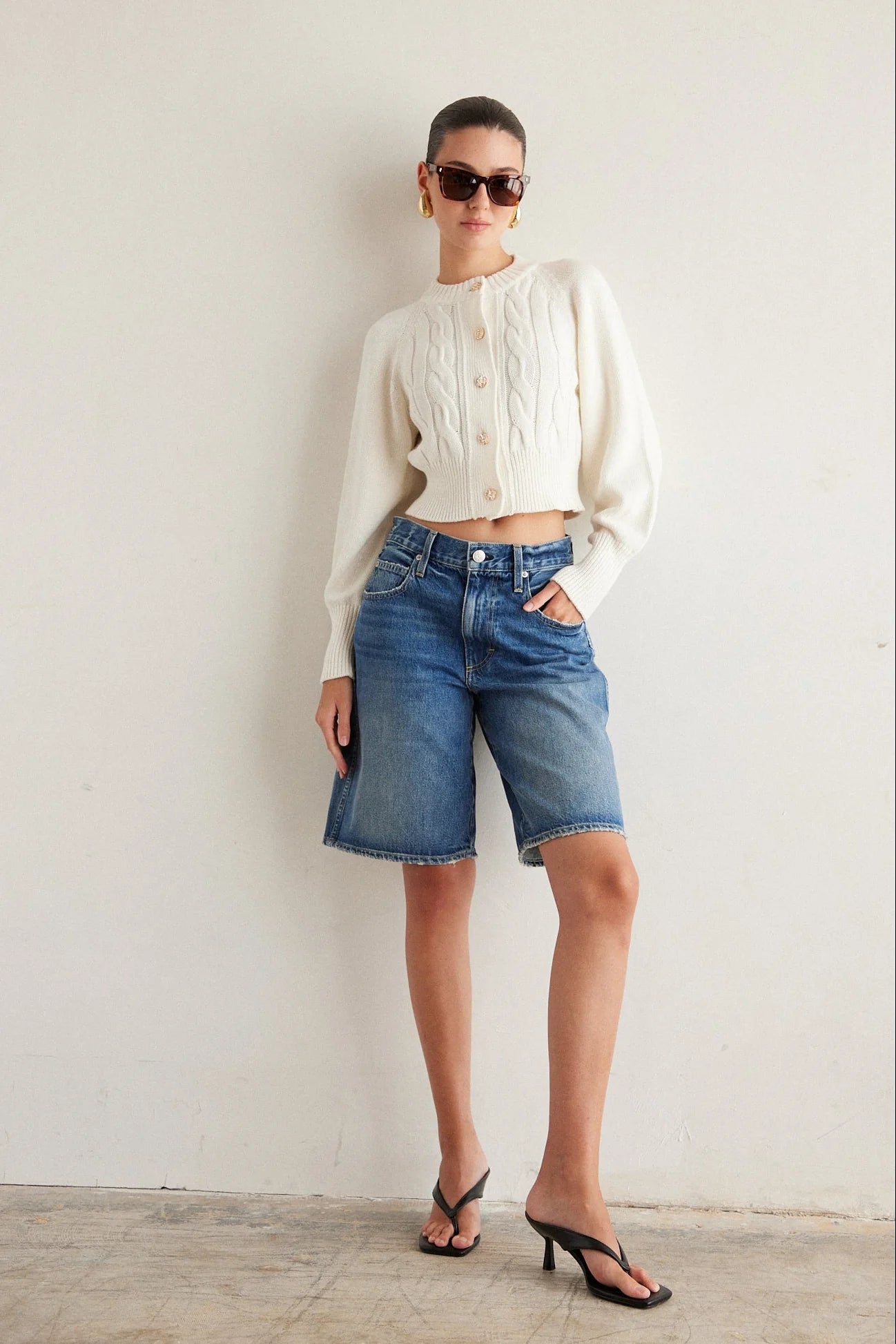 Introducing the JS71 Ambrosia Sweater—your new go-to piece for effortless elegance. This cream-colored beauty combines the best of comfort and style with its luxurious blend of 95% cotton and 5% cashmere, creating a fabric that feels as good as it looks. The cropped cable knit silhouette flatters every frame while the distinctive gold button details add just the right touch of polish without taking itself too seriously. Whether you're layering it over a crisp white tee or pairing it with your favorite denim, this sweater transitions seamlessly from season to season. Perfect for those moments when you want to look put-together without the fuss, the Ambrosia delivers understated sophistication with a playful wink. A wardrobe essential that proves timeless style never goes out of fashion.