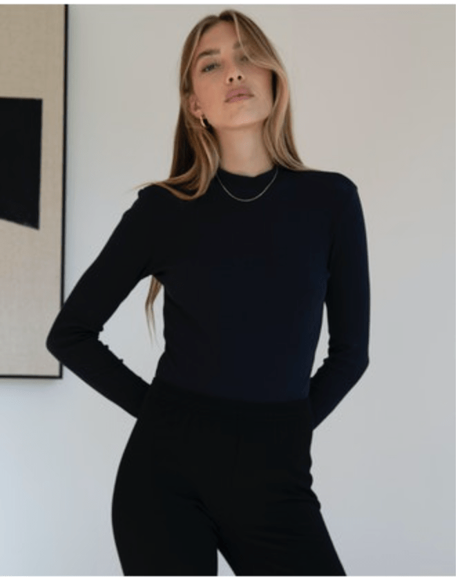 Monrow Long Sleeve Mock Neck Bodysuit - Estilo Boutique Monrow Long Sleeve Mock Neck Bodysuit - Estilo Boutique