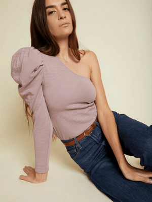 Sometimes one shoulder is better than two. Leave one shoulder bare while flattering the other with a sexy puff shoulder. This bold disco-inspired shape is all you need to make an entrance.