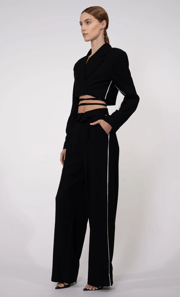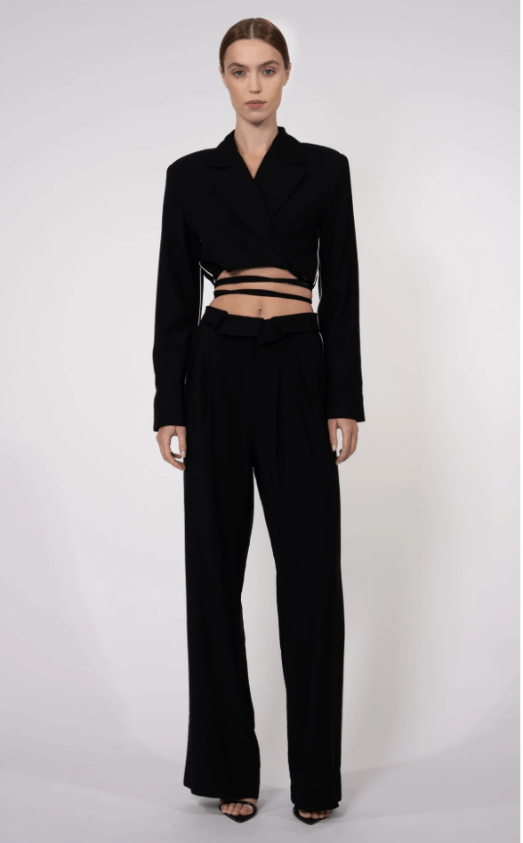 The Cade Crop Jacket is the perfect in-between of a basic and staple piece. This cropped blazer wraps around the waist and features shoulder pads for added structure. This jacket can be tied in many different ways creating many different looks with just one jacket. Pair with the matching Radford Pants.