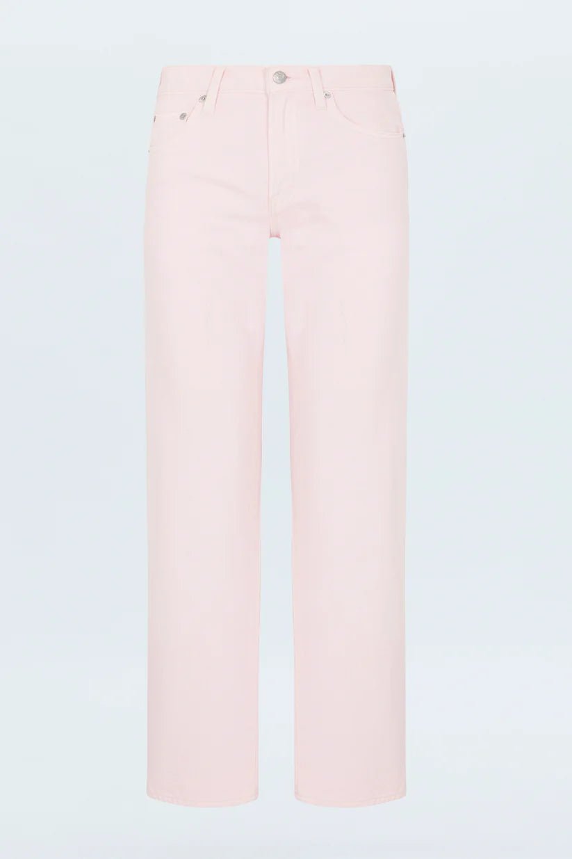 Meet your new favorite jeans. Designed with a flattering mid-rise and a unique bowed leg silhouette, these jeans offer a modern twist on a classic style. The straight leg is subtly bowed at the knees, creating a gently arched shape that's both comfortable and chic. In our soft Blush pink denim, these jeans add a touch of feminine color to your wardrobe. The cropped ankle length and clean hem make them perfect for showcasing your favorite shoes.