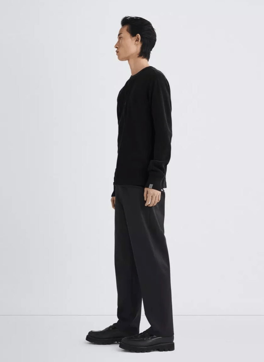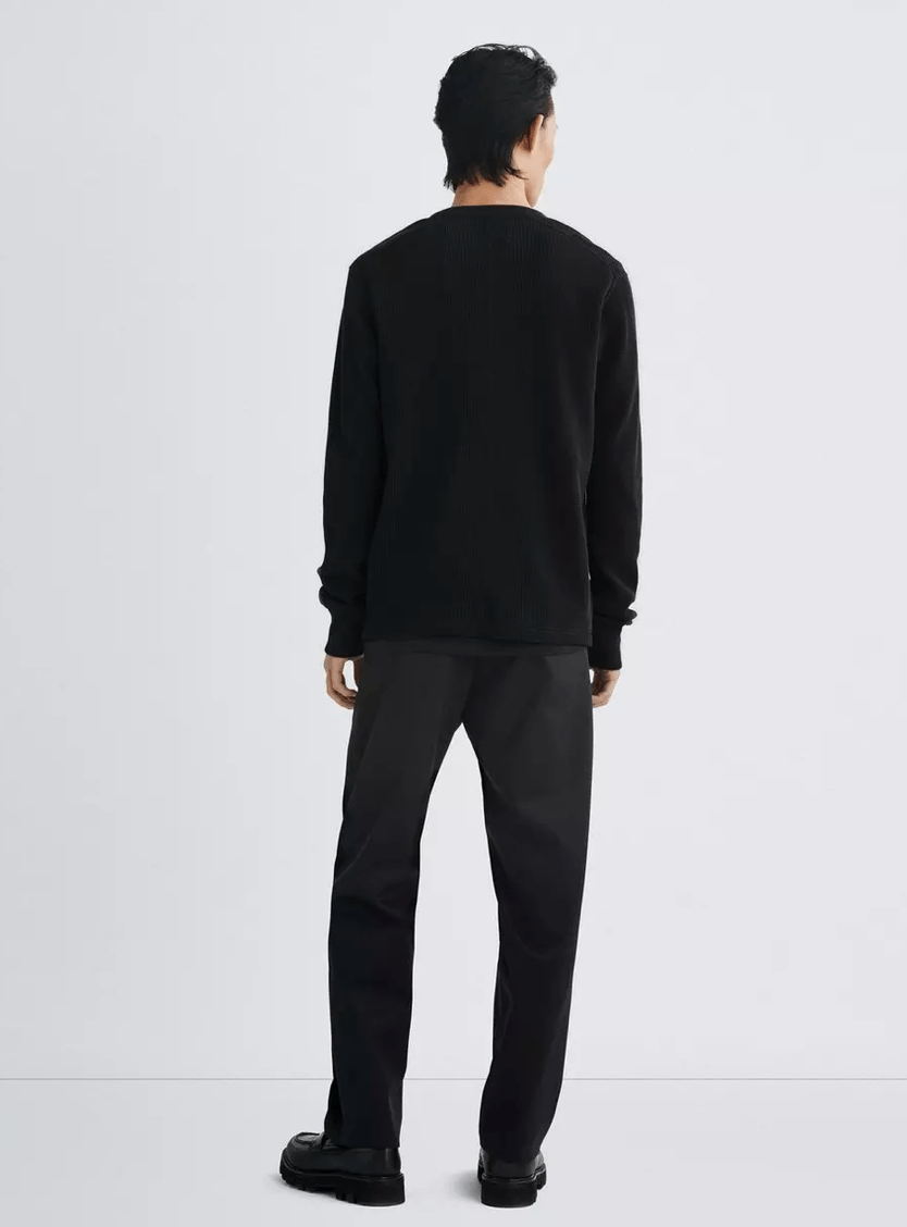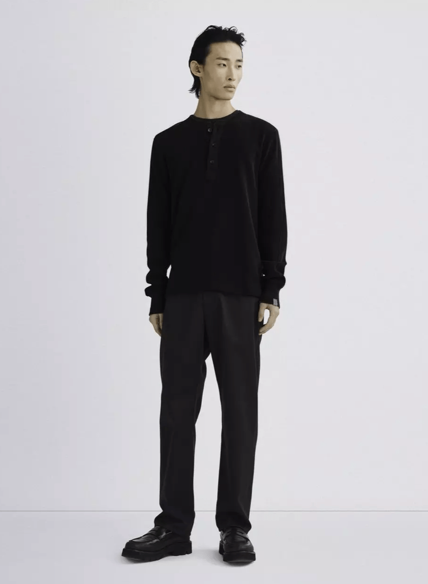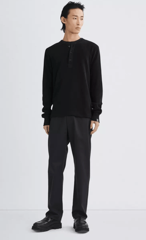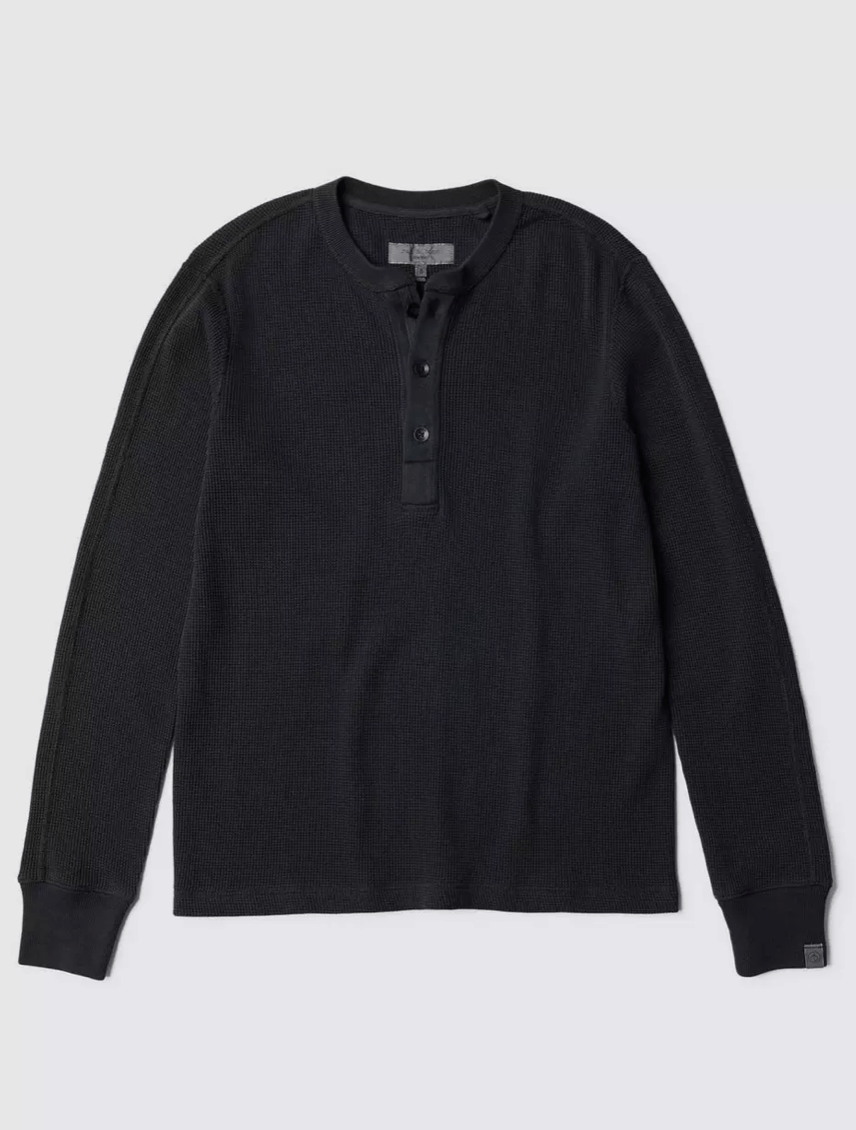 Rag & Bone Garment Dyed Waffle Henley in Black