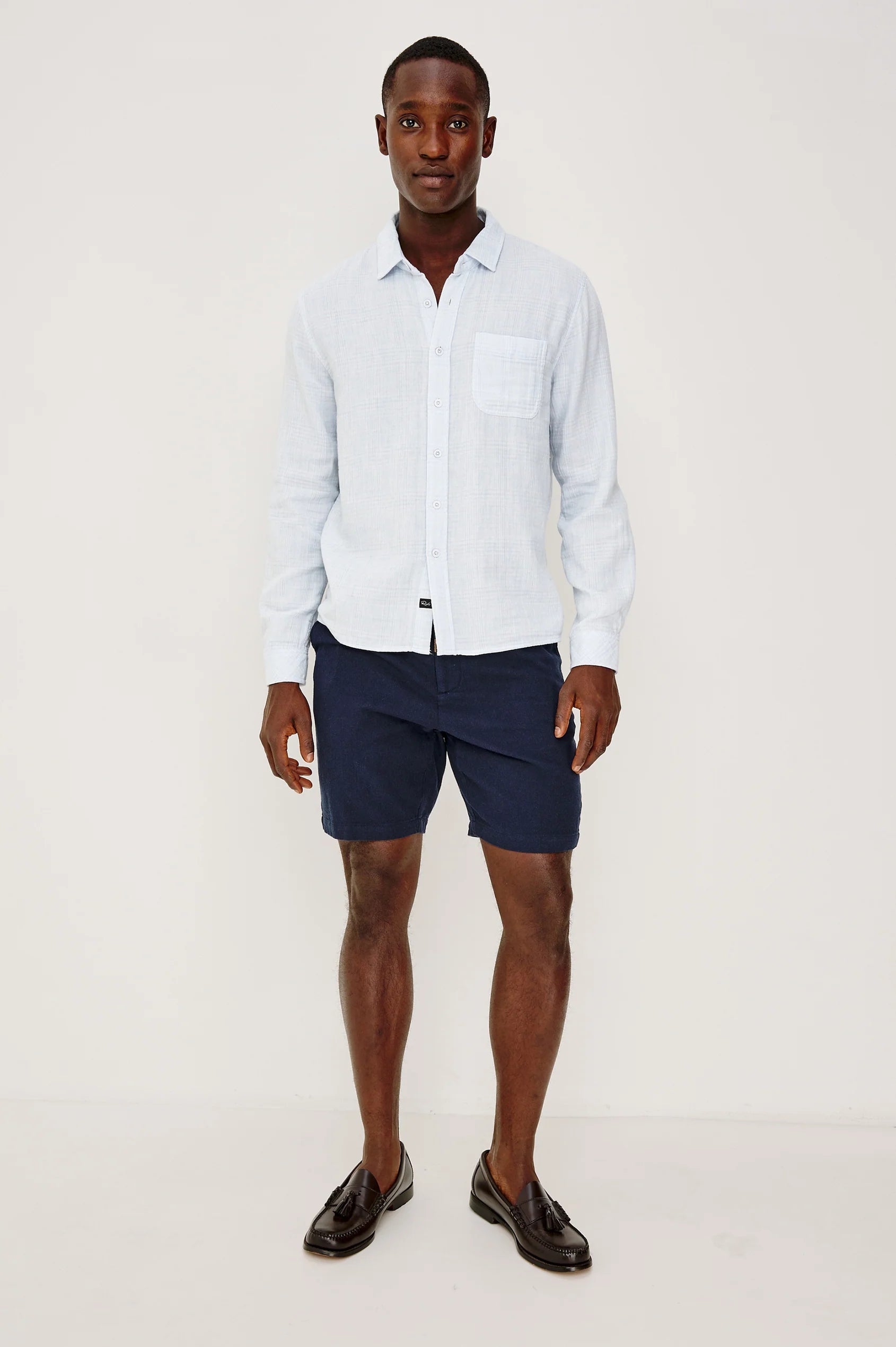 The Owens is your go-anywhere essential. Designed in lightweight, breathable cotton with subtle texture, it features a classic collar, front buttons, buttoned chest flap pockets, long sleeves, and a relaxed fit.