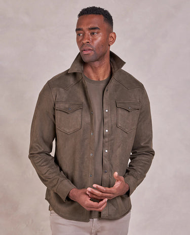Rye 51 The Wyatt Microsuede Shirt Jacket in Dark Olive