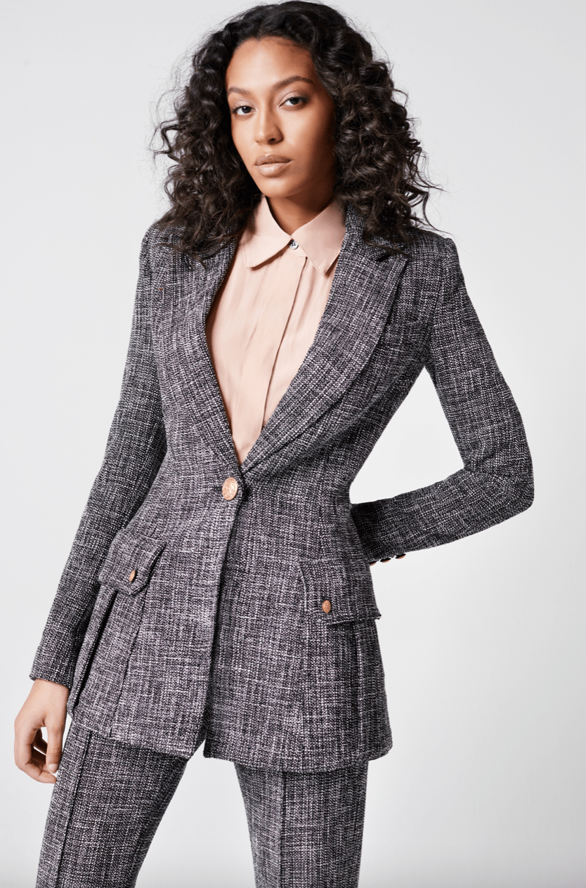 Smythe Cargo Pocket Longline Blazer in Black Tweed - Estilo Boutique Smythe Cargo Pocket Longline Blazer in Black Tweed - Estilo Boutique