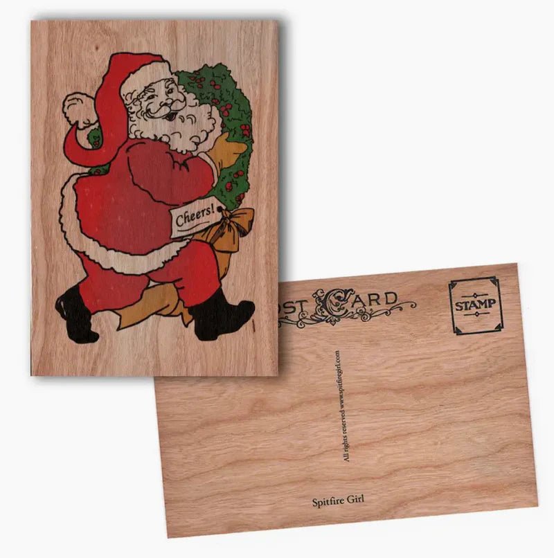 Spitfire Girl Santa Wood Postcard