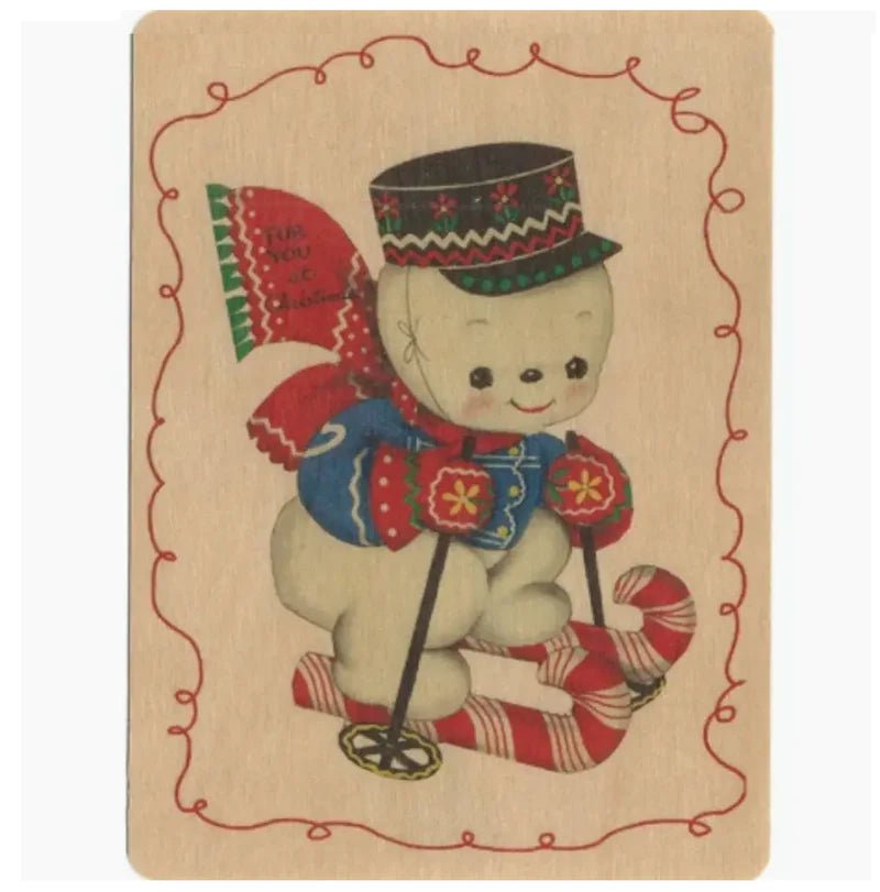 Spitfire Girl Skiing Snowman Wood Flat Card