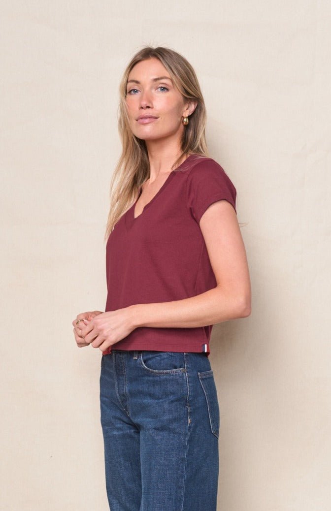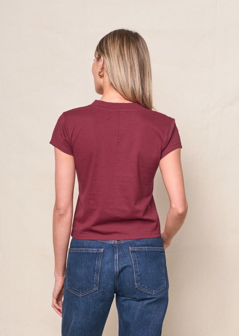 Stateside Cloud Jersey Short Sleeve V-Neck in Ruby