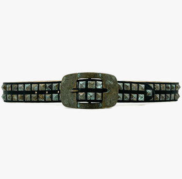 Jesse is a rugged, unisex hand-crafted Italian leather belt in versatile black. Adorned with patina pyramid stud detail and a center bar buckle, it's both stylish and durable.
