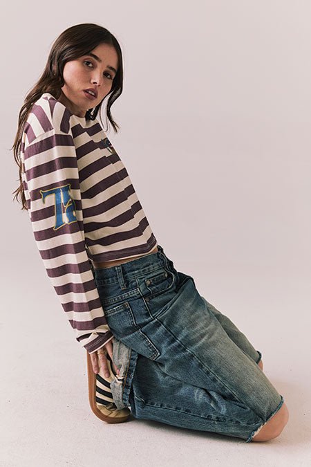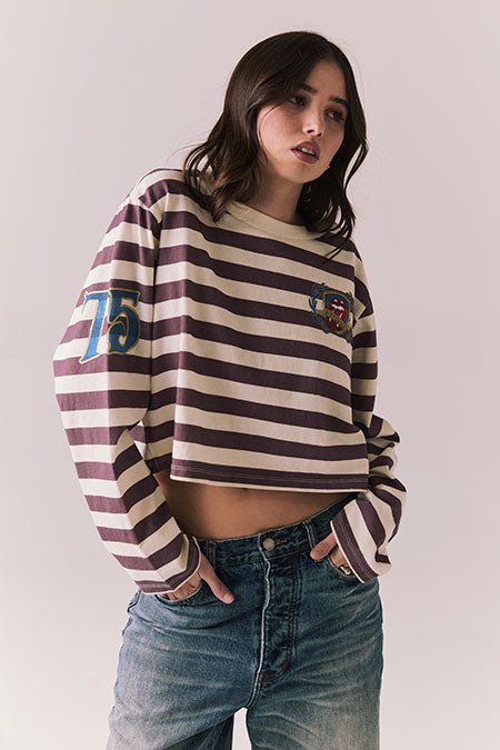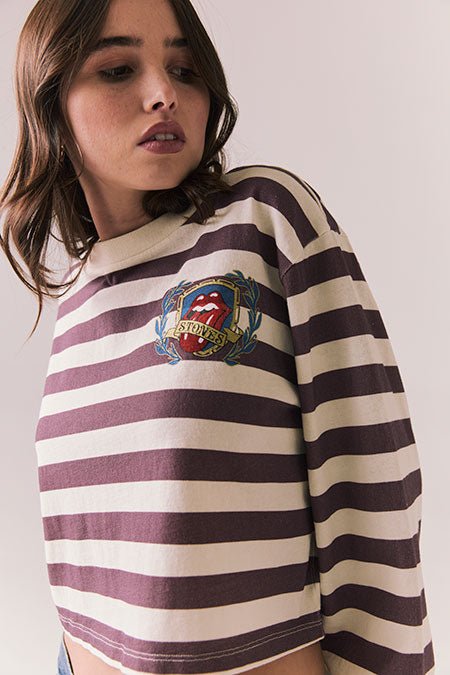 The Rolling Stones Rugby Stones Logo Long Sleeve channels that same bold, effortless energy with sporty stripes, a slight crop, and roomy long sleeves.