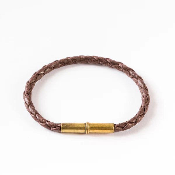 The Flint Single Waxed Canvas Bracelet is made using reconditioned .22 shells and strong magnets. This patented closure makes the Single Wrap perfect for stacking.