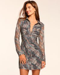 Ramy Brook best selling Fall midi dress gets a mini treatment in the Wyatt Mini. The mesh lace, fitted bodice offers the same flattering look, now with a shorter silhouette, perfect for transitional season dressing. The long-sleeve button-down creates modern femininity – perfect for date nights and stylish city adventures where looking effortlessly chic is the assignment.
