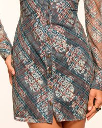 Ramy Brook Wyatt Mesh Button Down Mini Dress in Amber Plaid